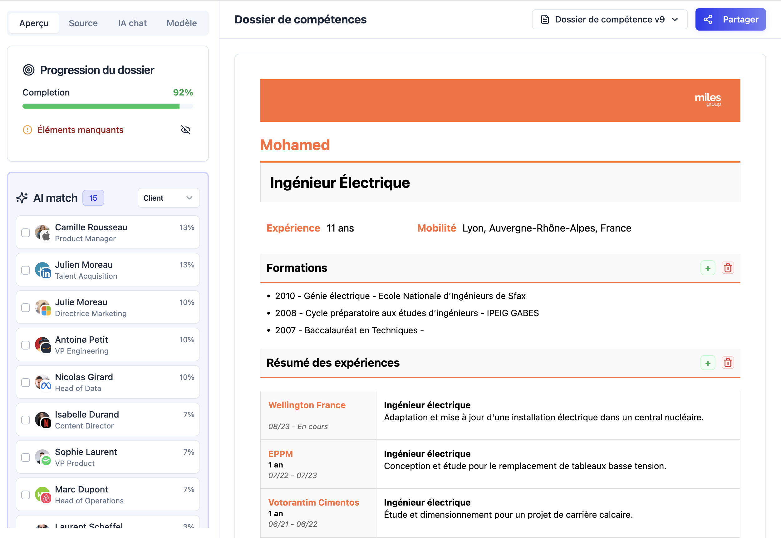 Créez des présentations candidats complètes et professionnelles pour vos clients.