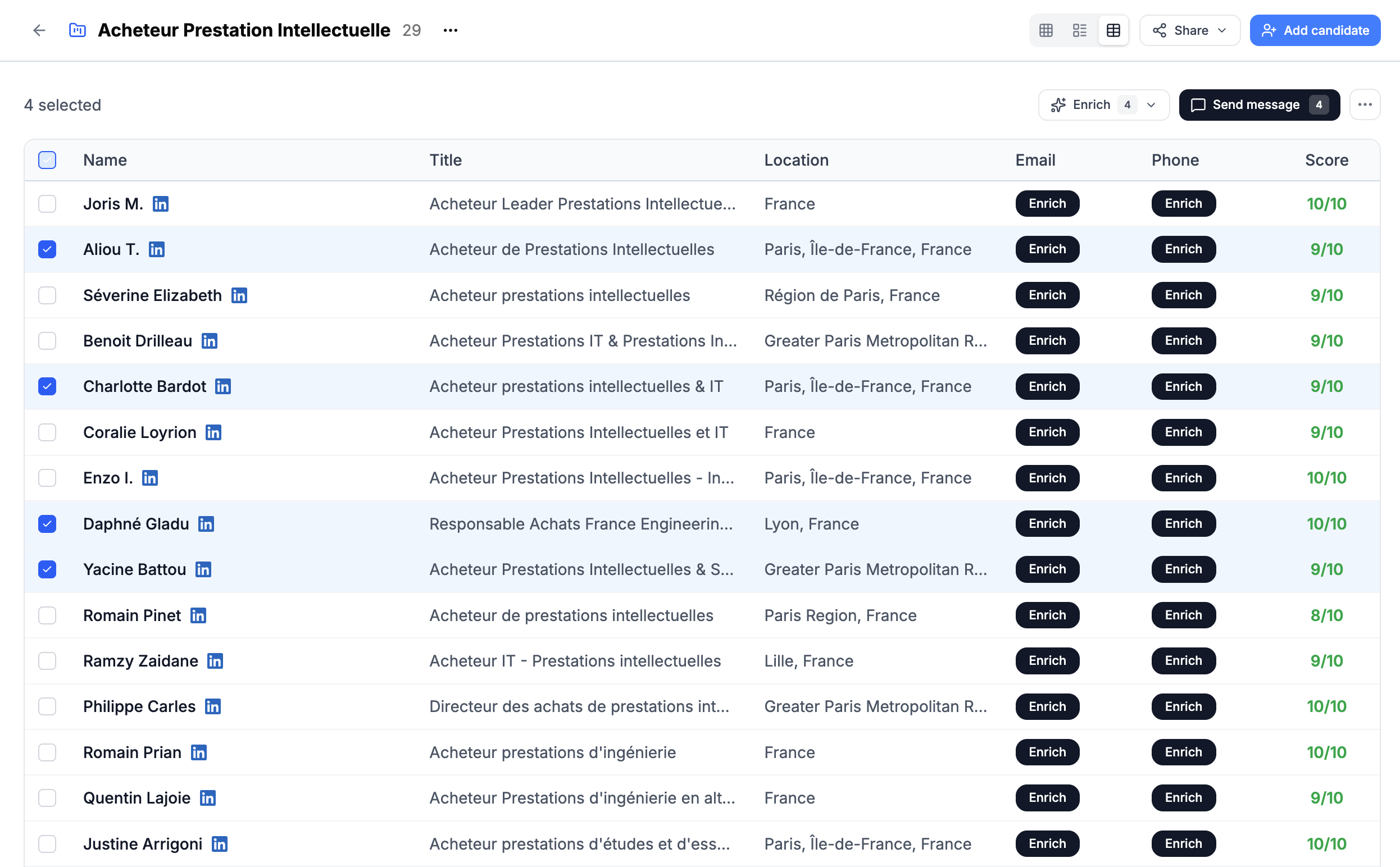 Emails, téléphones, profils LinkedIn : enrichissez vos contacts en un clic, sans quitter l'interface.